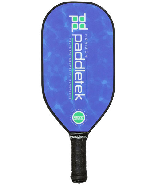 The Paddletak Horizon™ Pickleball Paddle in Blue is a light to medium weight paddle with a 17" length - the maximum allowed by the USAPA. The sweet spot extends toward the tip of the paddle giving extra power for put away shots. The Horizon™ is a great choice for both doubles and singles players who are looking for extra reach.
